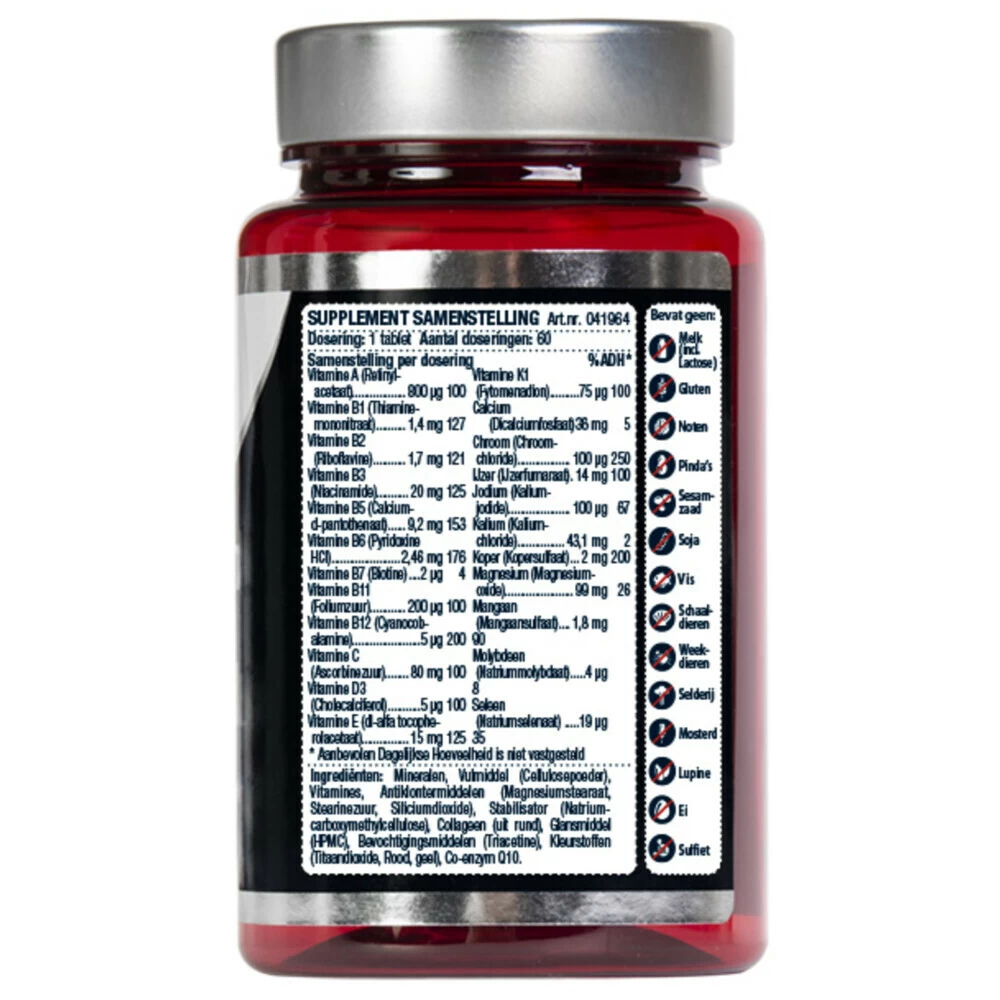 Lucovitaal Collageen Super Compleet +Multi A-ZCollageen Super Compleet +Multi A-Z van Lucovitaal is speciaal gemaakt voor volwassenen en bevat vitamine C. Vitamine C draagt bij aan de vorming van collageen dat helpt om de huid te verstevigen (van binnenuit) en is goed voor het behoud van sterke botten en tanden. Lucovitaal Collageen Super Compleet +Multi A-Z:Vitamine C draagt bij aan het behoud van sterke botten en tandenVitamine E helpt cellen te beschermen tegen invloeden van vervuilingZink