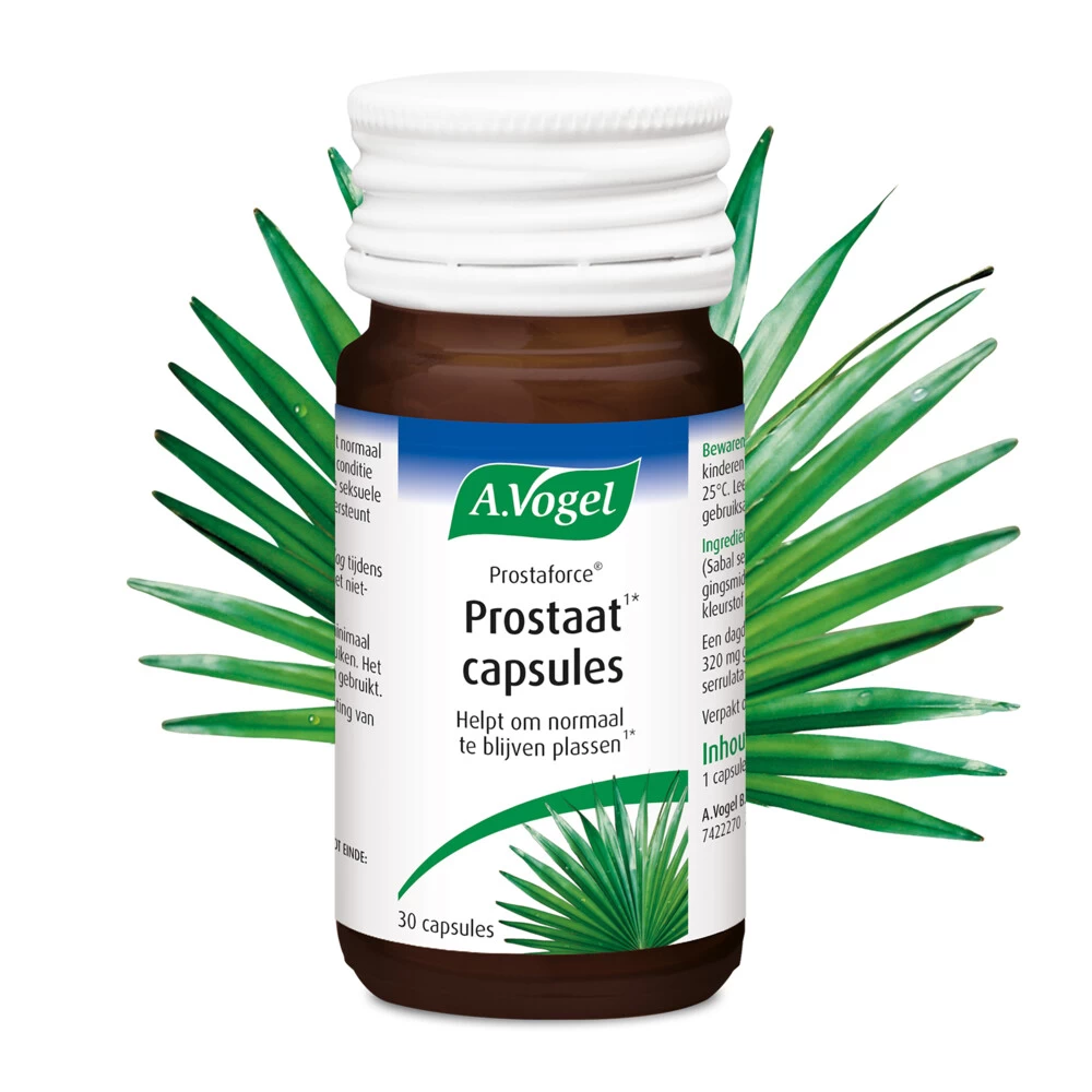A.Vogel Prostaforce Prostaat1* helpt om goed te blijven plassenProstaforce* Prostaat Capsules is een voedingssupplement dat helpt om goed te blijven plassen1*. A. Vogel Prostaforce Prostaat bevat maar liefst 320 mg Zaagbladpalm (Sabal serrulata). zaagbladpalm ondersteunt het normaal blijven plassen*. Prostaforce* Prostaat Capsules zijn ook goed voor de prostaat en de seksuele gezondheid van de man*. Bovendien ondersteunt het de mannelijke potentie*.Voor behoud normale prostaatOm goed