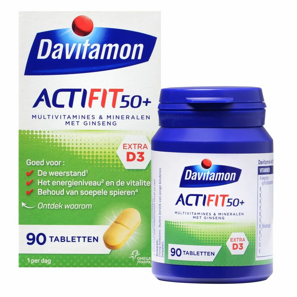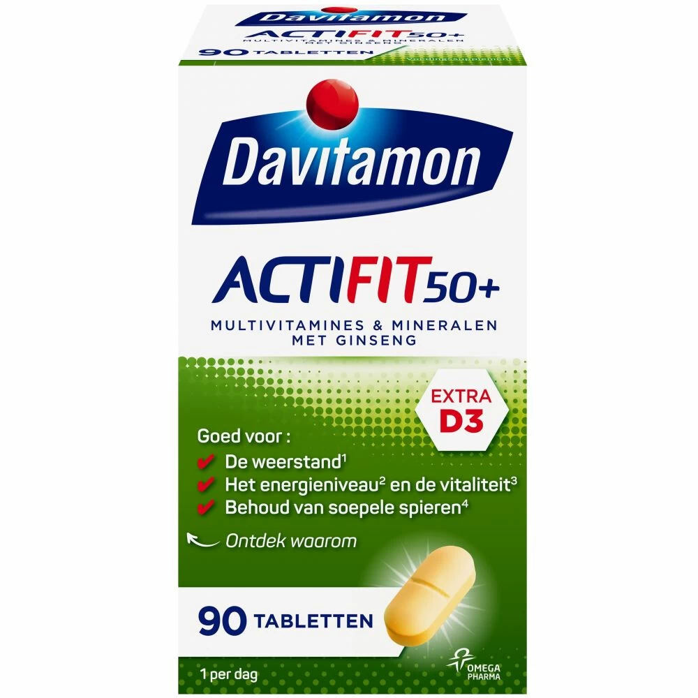Davitamon Tabletten voor een evenwichtige levensstijlDavitamon Actifit 50+ is een multivitamine speciaal ontwikkeld voor de 50 plusser. Deze multivitamine voorziet in de specifieke behoeften aan vitamines en mineralen bij het ouder worden, aangevuld met ginseng.