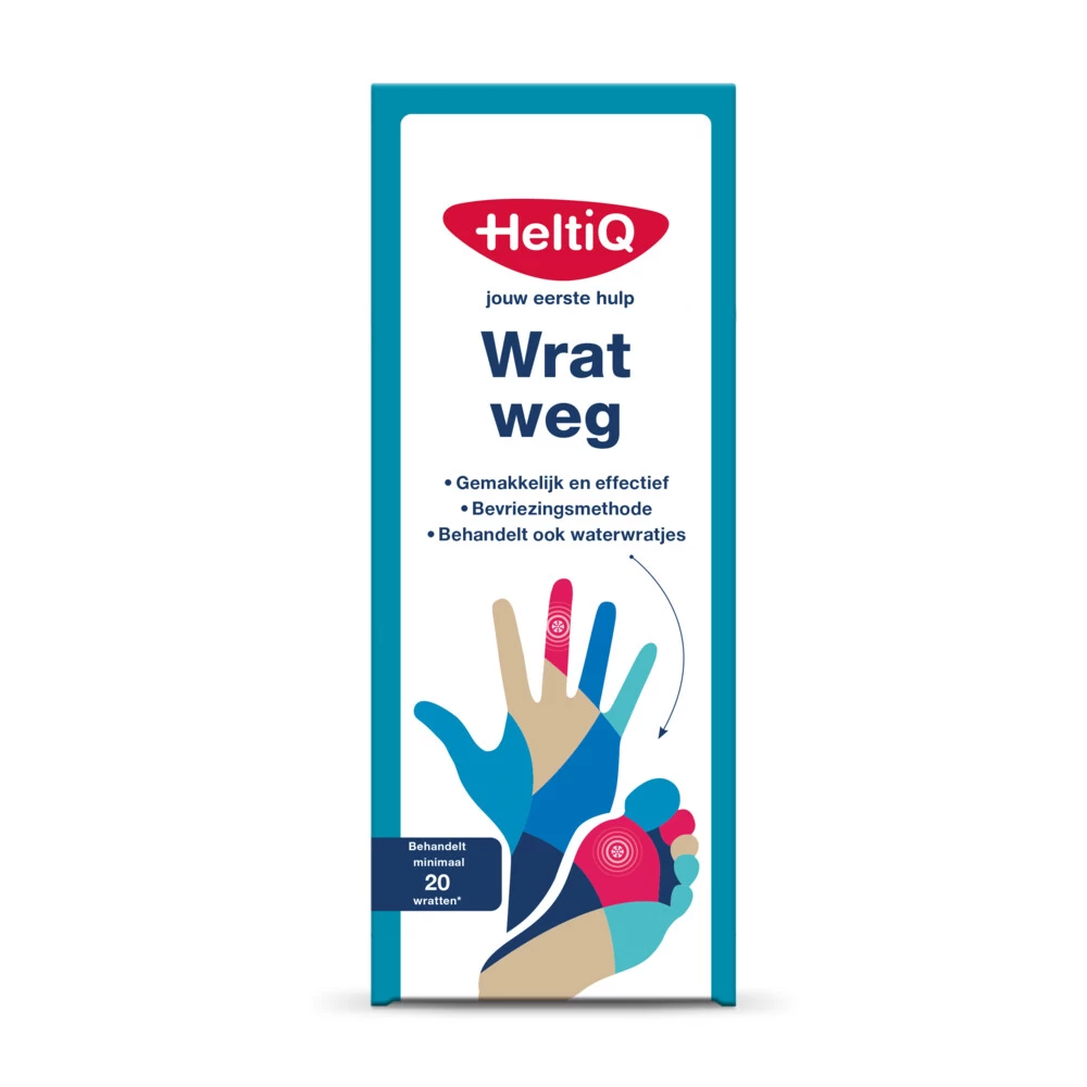 HeltiQ WratWegMedisch hulpmiddel Met HeltiQ WratWeg kun je op een eenvoudige manier wratten én waterwratjes zelf behandelen. De werkzame stof in WratWeg is gebaseerd op de effectieve huisartsmethode, ook wel cryotherapie genoemd.Effectieve behandeling van hand- & voetwratten én waterwratjesEenvoudig, snel en effectiefKindvriendelijke bevriezingsmethode voor wratten