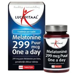 Lucovitaal Melatonine Puur Lucovitaal Melatonine 0.299 bevat 299mcg per gemakkelijk slikbaar tabletje. Melatonine is een lichaamseigenstof waarvan de productie toeneemt wanneer het donker wordt. Dit proces werkt helaas niet bij iedereen optimaal, en kan worden ondersteunt door Lucovitaal Melatonine Puur 299mcg.Bevat 299mcg pure Melatonine per gemakkelijk slikbaar tabletjeEén tabletje per nacht nodig
