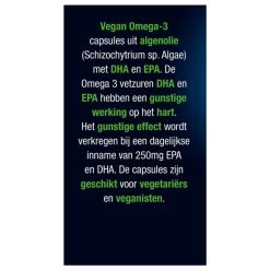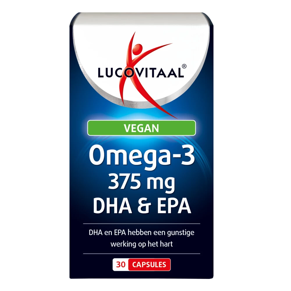 Lucovitaal Omega-3 EPA & DHALucovitaal Omega-3 EPA & DHA capsules uit algenolie (Schizochytrium sp. Algae) met DHA en EPA. De Omega 3 vetzuren DHA en EPA hebben een gunstige werking op het hart. Het gunstige effect wordt verkregen bij een dagelijkse inname van 250mg EPA en DHA. De capsules zijn geschikt voor vegetariërs en veganisten.DHA en EPA hebben een gunstige werking op het hartVegan Omega-3 capsules uit algenolieGeschikt voor vegetariers en veganistenAls toevoeging op een gezo