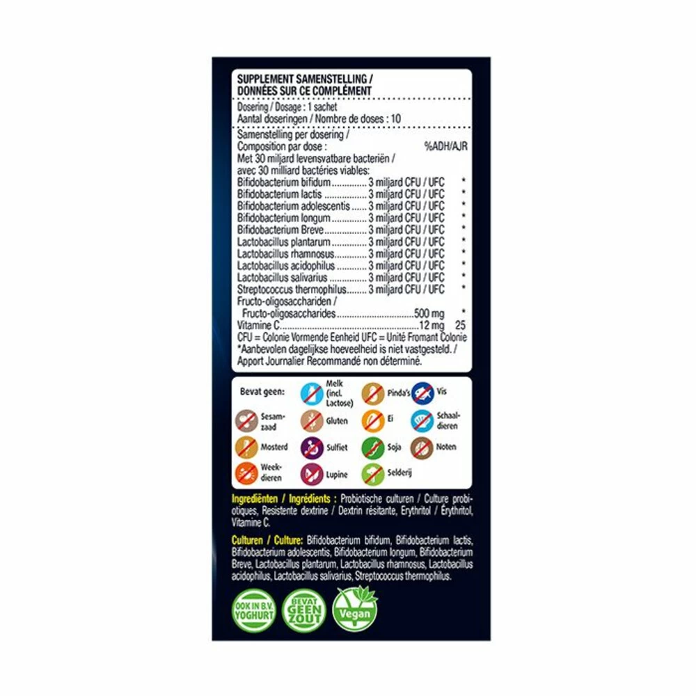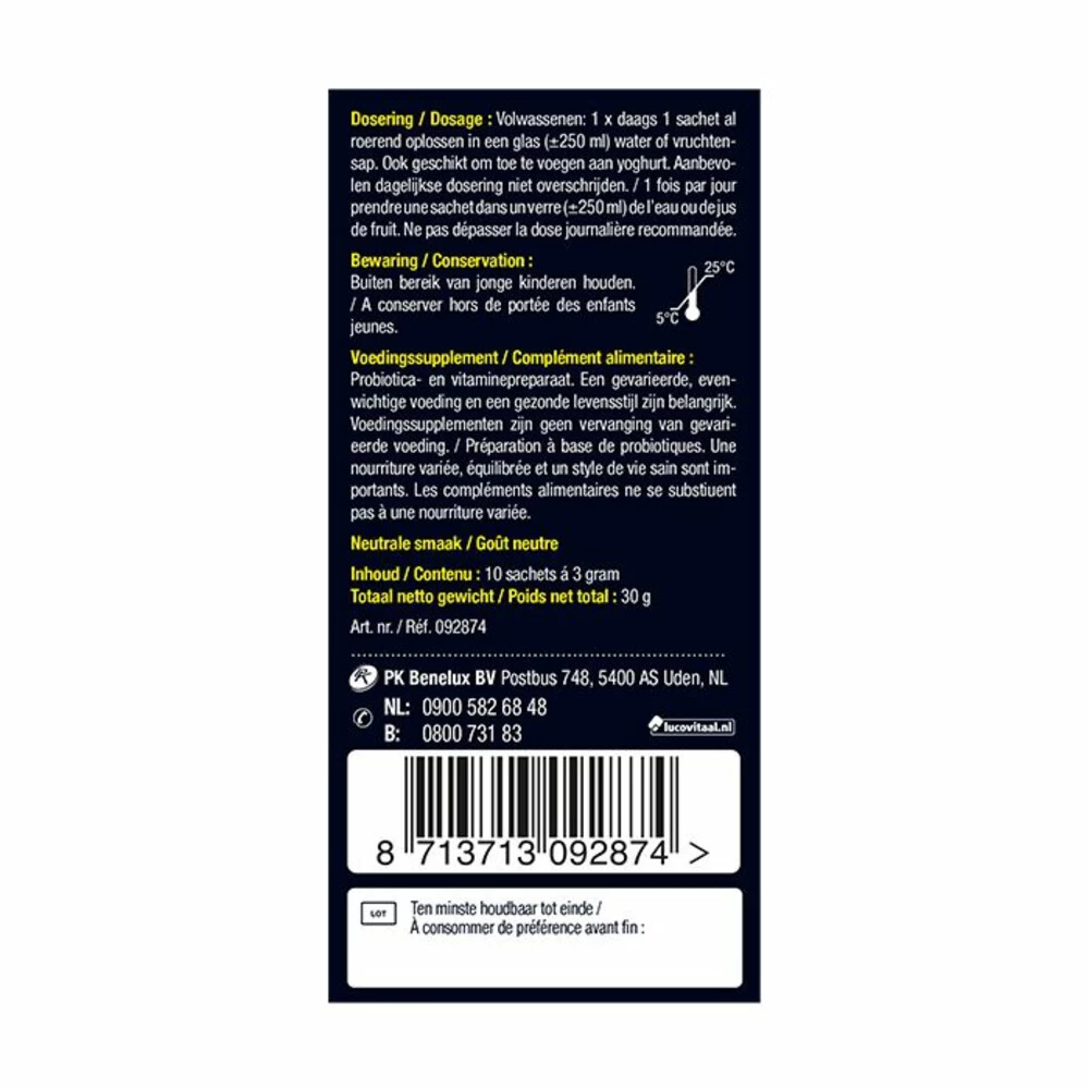 Lucovitaal Pre & Probiotica Lucovitaal Pre & Probiotica Sachets bevatten per portie 10 bacteriestammen met maar liefst 30 miljard bacteriën. Vitamine C is toegevoegd ter ondersteuning van het immuunsysteem en zorgt mede voor een goede weerstand.Bevat 30 miljard bacterien en 500 mg PrebioticaIn een handig sachetVegan