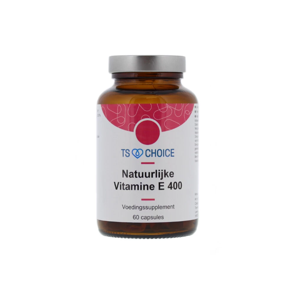 TS Choice Vitamine E 400TS Choice Vitamine E 400 is een in vet oplosbare vitamine, die veel voorkomt in o.a. soja- en tarwekiemen. Vitamine E staat bekend als een belangrijke antioxidant en helpt de cellen beschermen tegen oxidatieve schade door luchtvervuiling en zonlicht. Vitamine E draagt zo bij aan het behoud van gezonde cellen en weefsels. TS Choice Vitamine E 400 werd voorheen verkocht onder de naam Best Choice Vitamine E 400. Alleen de naam is gewijzigd, de samenstelling niet.