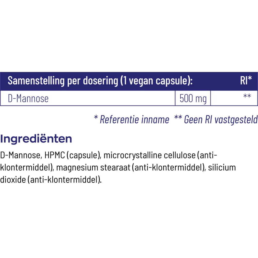 Vitakruid D-Mannose 500Vitakruid D-mannose 500 bevat een hoge dosering van de zuiverste d-mannose. Vitakruid D-Mannose 500 zit in een capsule, dit heeft zowel voordelen op het gebied van opname als smaak. Hoge dosering d-mannose per capsuleHoogwaardig extractieproces staat aan de basisEfficiënte opname door capsuleDoodt geen goede bacteriënGlutenvrij en lactosevrijVegan
