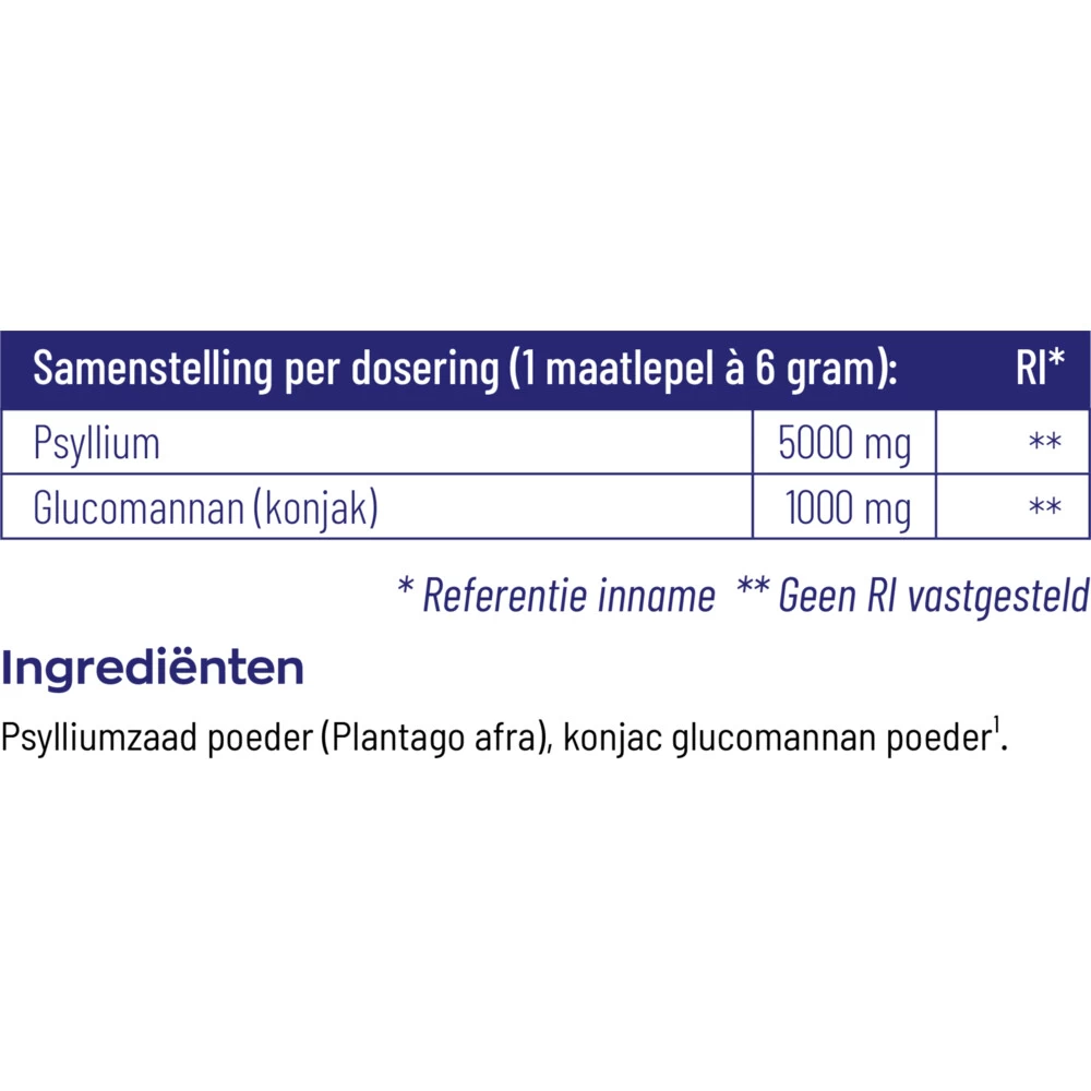 Vitakruid Psyllium GlucomannVitakruid Psyllium & Glucomannan Poeder bevat poeder van de Psyllium en de Glucomannan. Glucomannan draagt bij aan het behoud van normale cholesterolgehalten in het bloed*. Daarnaast kan Glucomannan gebruikt worden bij een energiebeperkt dieet.Uniek vezelcomplex met psyllium en glucomannanHoge absorptiecapaciteit door oplosbare vezelsWetenschappelijk onderbouwde combinatieUitsluitend het geconcentreerde psyllium husk- Granulaat in poedervormGlutenvrij en lactosevr
